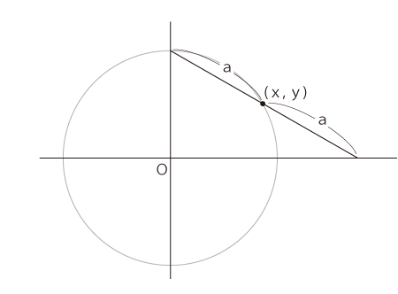 「点(x, y) とOの距離はa」は,ユークリッド幾何ではつぎの命題になる: