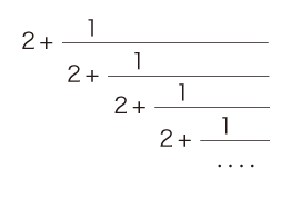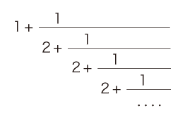 以下に解説するが,√2 の連分数表現がつぎのようになる: