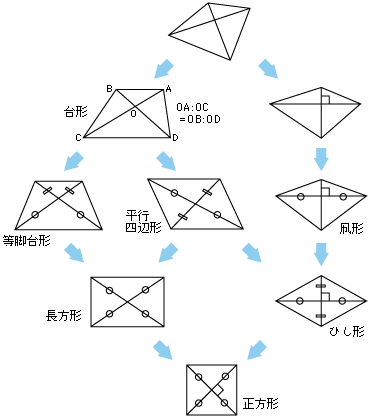 実際,四角形の基本的なカテゴリーは,対角線のことばで特徴づけることができます。