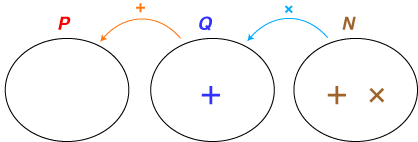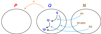 - Qの要素に対しNの要素は「倍」の作用をする