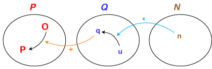 - 集合P,Q,Nは「作用」という関係でつながっています。すなわち,