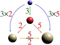 ここで,例えば,3倍すると赤の大きさになるものをとると,つぎのような構造図が得られます。