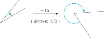 - このように考えた「回転の大きさ」は, 正逆2方向をもつ量になります。──特に,二つの回転の間の比 (倍) は「正負の数」で表現されます: