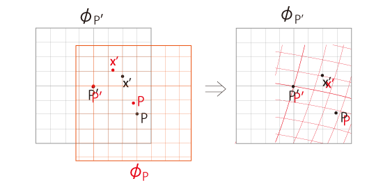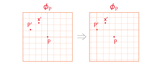 \(\phi_P\) の原点を \(P'\) に移動