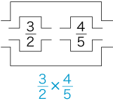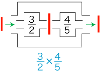 分数の積・乗法の指導の最終目標は,分数の積 (「×」記号の使い方) がつぎの形で理解されることです。