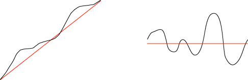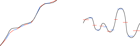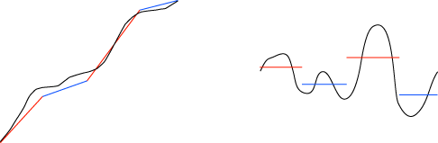 左のグラフを直線グラフに近似すると,この近似グラフには右の定値グラフが対応する。