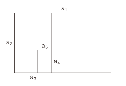 黄金比の2辺a1, a2に対して,ユークリッド互除法を施す: