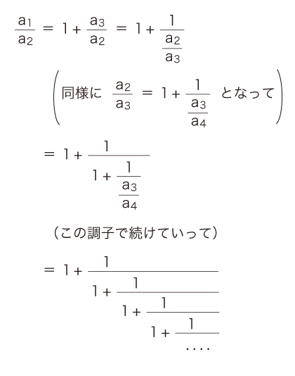 これが,φ( = (1+√5)/2 ) の連分数展開というわけである。