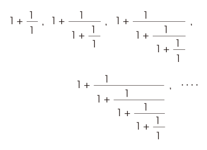 この連分数表現は,つぎの数列の極限 (収束値) を表現している::