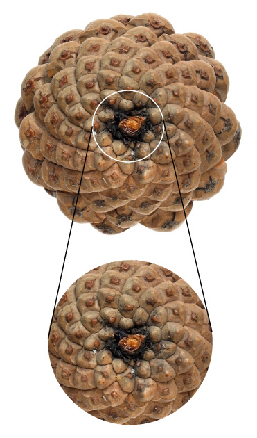 こうして,<松ぼっくりを下から見た画像>のようになる。 |