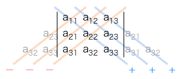 行列式の値は,つぎの計算公式に代入することで求まる: