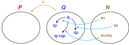 - Qの要素に対しNの要素は「倍」の作用をする