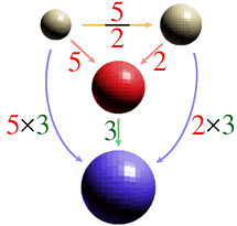 ここで,例えば,3倍すると赤の大きさになるものをとると,つぎのような構造図が得られます。