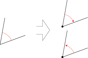 これと同じ考え方で,「角度」に正逆2方向をもたせたのが,「(1点を回転の中心とする) 回転」です。