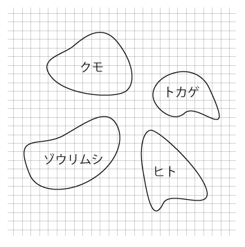 ここでは,ヒト,トカゲ,クモ,ゾウリムシが互いに独立な空間になっている。
