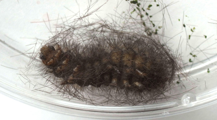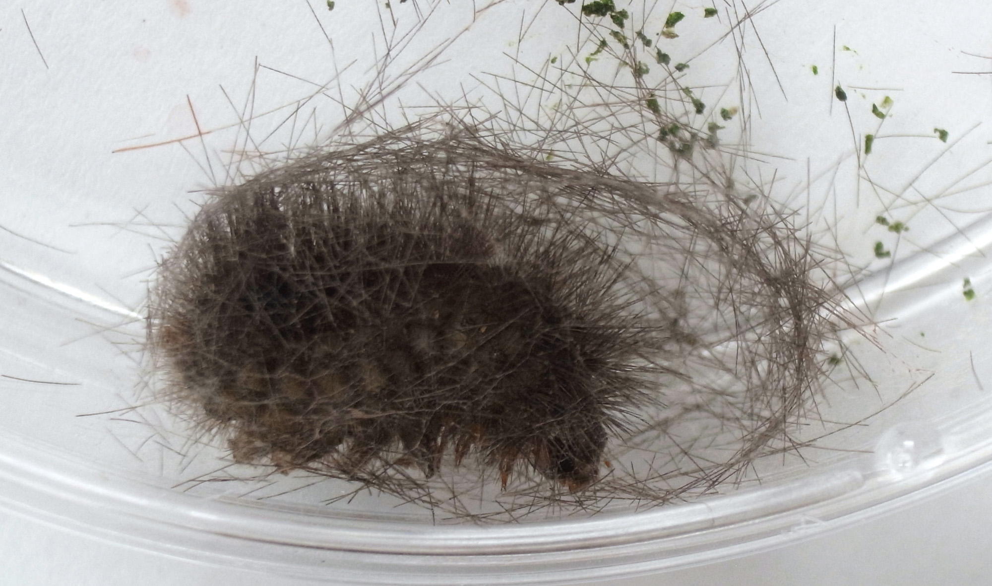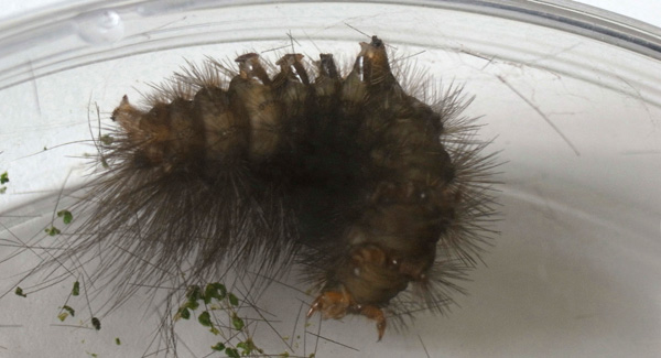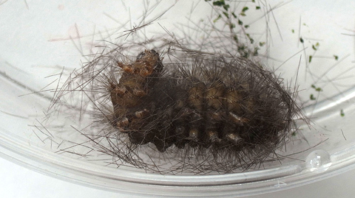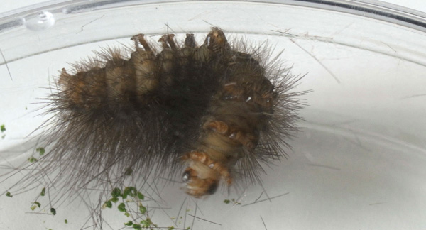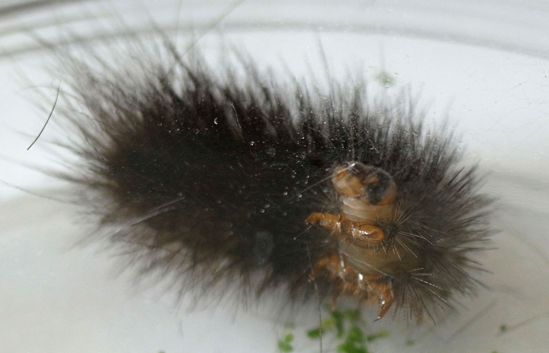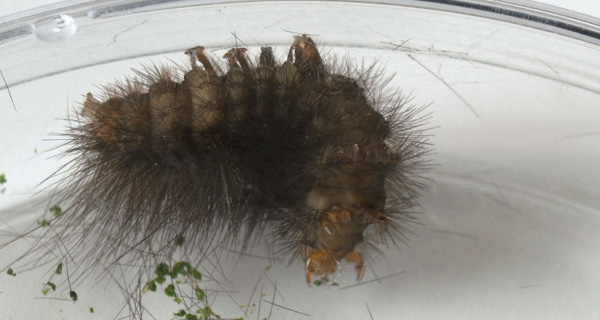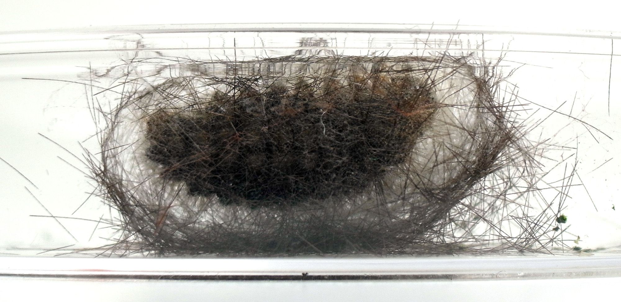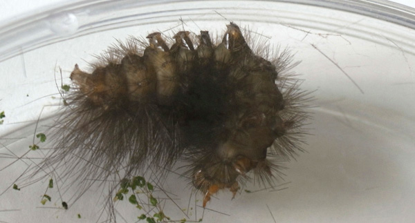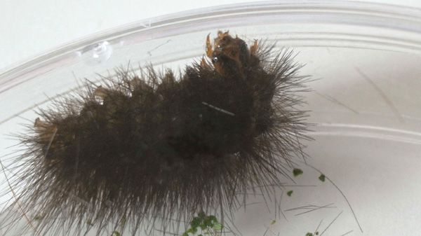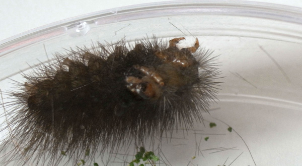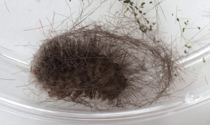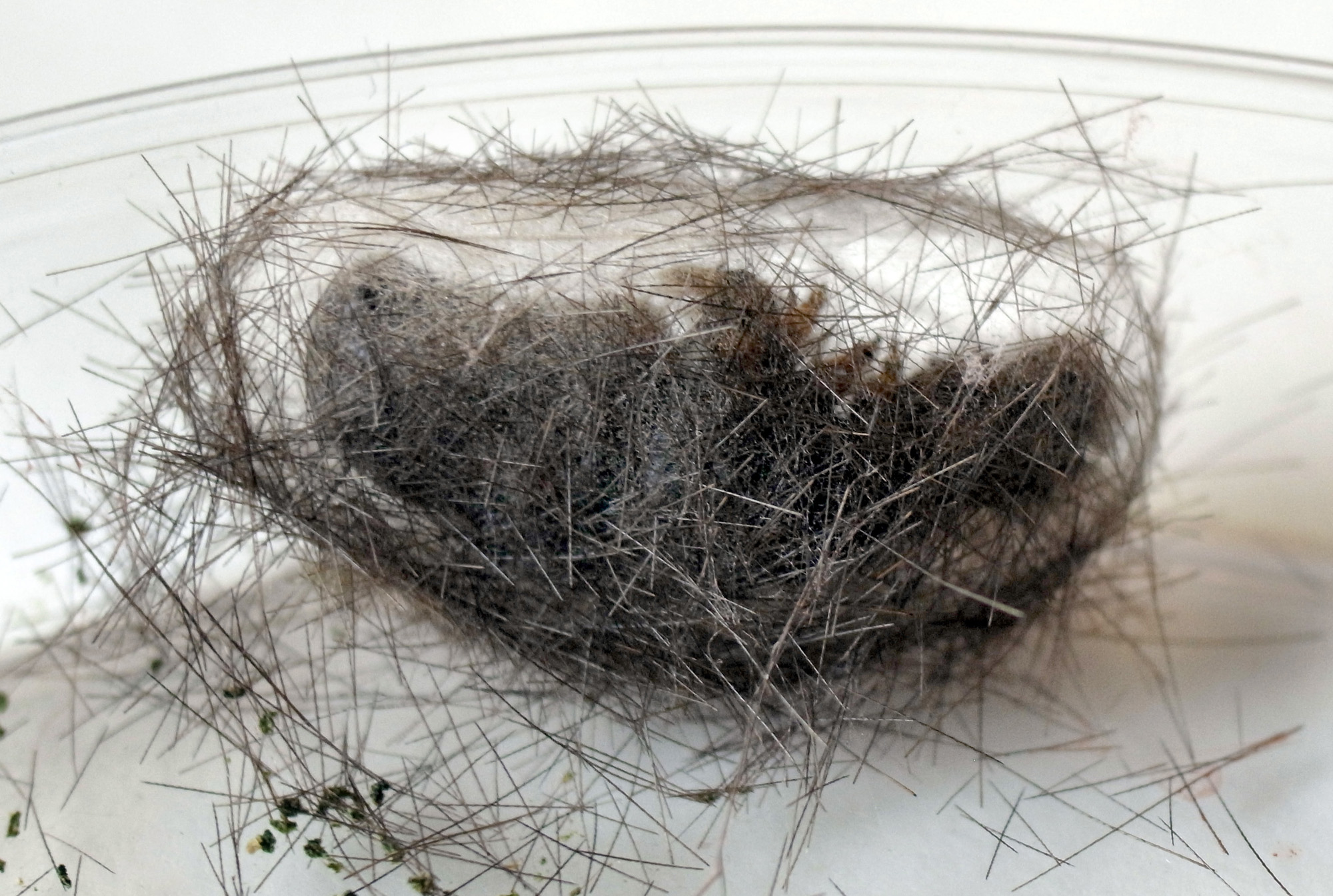 繭づくりでは,餌の葉も繭の材料にするらしい。 この度は,草の無いシャーレの中での繭づくりになる。 だいじょうぶか? 以下,繭の材料にする落毛の量も増えていく。 噛み切っているのか,抜いているのか,落とせるのか,わからず。 |