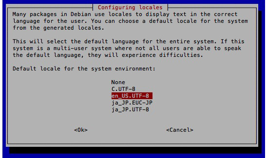 Default は en_US.UTF-8 にする: