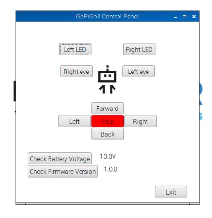 GoPiGo3 Control Panel を起動すると,操作パネルが現れる: