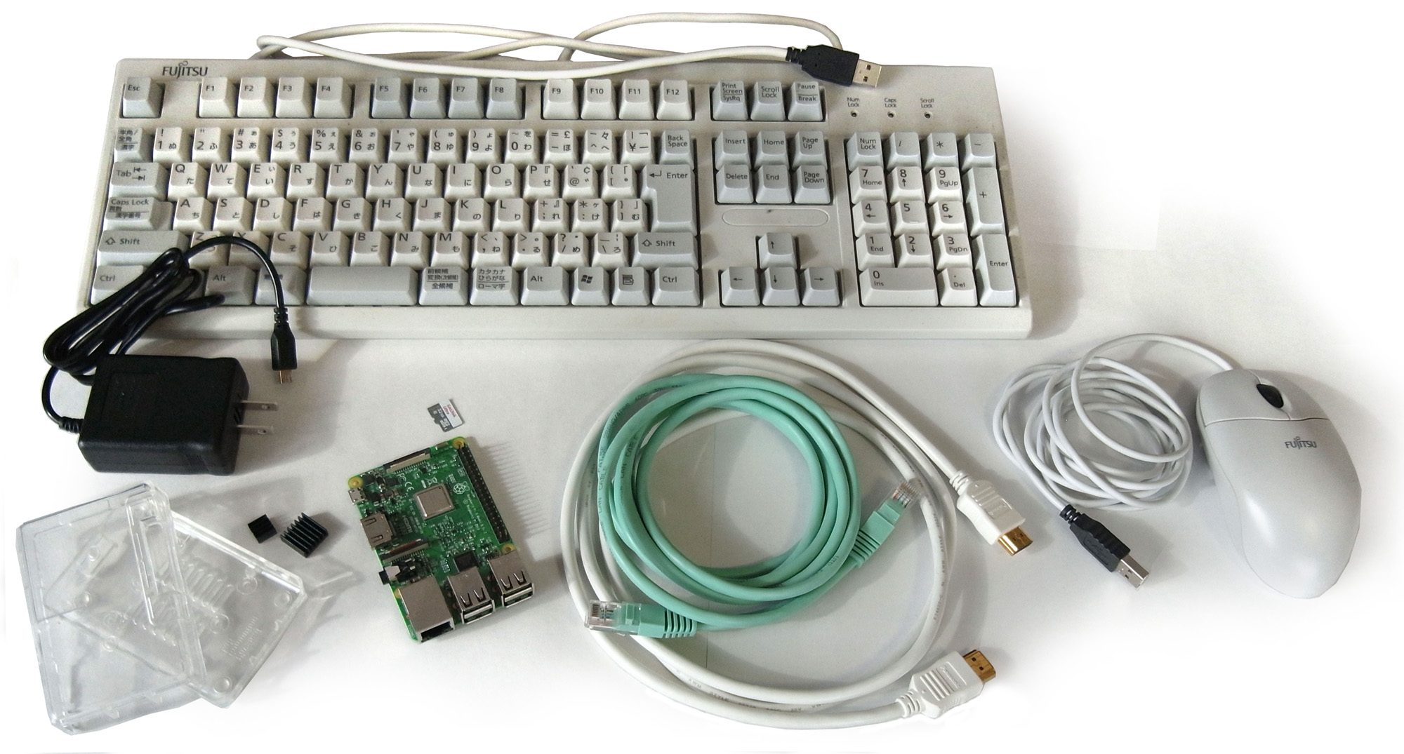 (ディスプレイ,キーボード,マウス,HDMIケーブル,ネットワークケーブルは,あり合わせのものを用意)