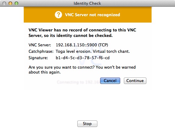 初回のアクセスということで,接続の確認を求めてくる