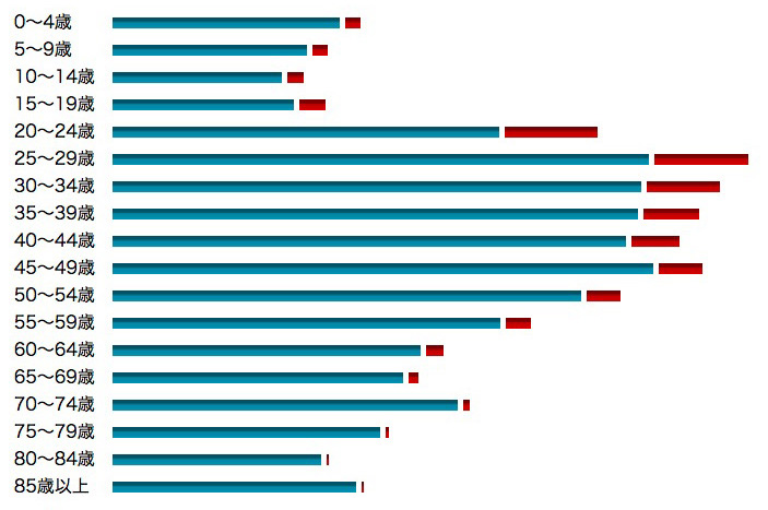 25〜29歳 28,855 24,548 4,307 (14.9 %)