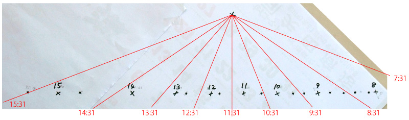 影の移動は,理論値ではつぎのようになる ( 日時計):