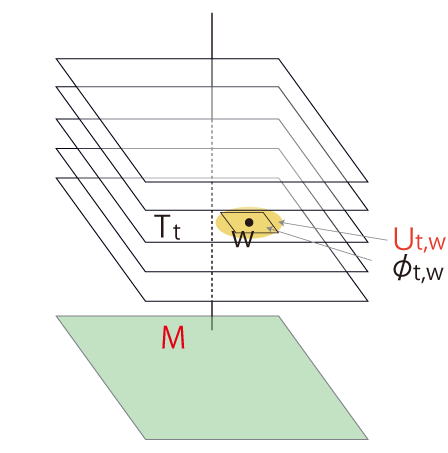 リーマン多様体 \( M\) は,点 \(\ P\) ごとに地図 \(\phi_P \subset \mathbb{R}^n\) をとる。