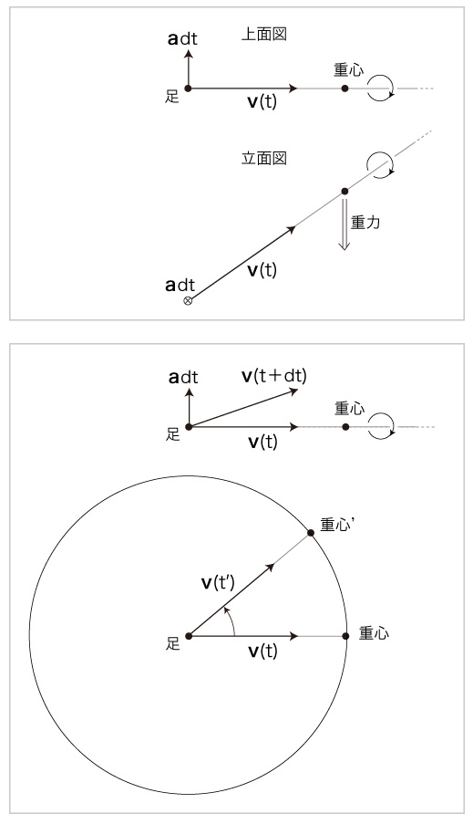 特に,重心が足の位置にあるとき,頭の円運動がなくなる。