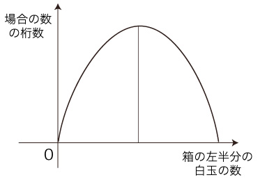 箱の左半分に白玉n個 → log(これの<場合の数>)