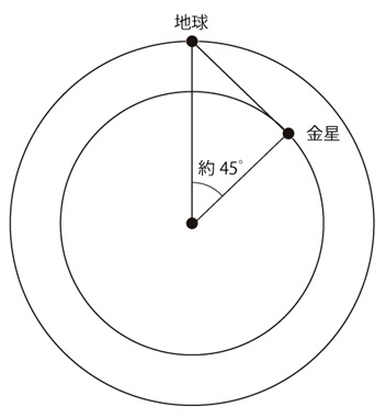 1.082 ÷ 1.496 = 0.7232 ≒ sin 46.3゜= sin 45゜ この金星が地平線から昇るのを赤道上で見るとき,その時刻は約3時: