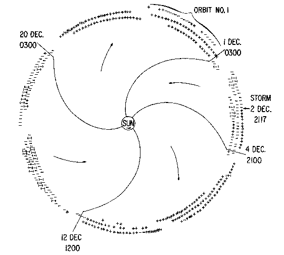 太陽は約27日の周期で自転しているため、太陽風によって運ばれる磁力線は螺旋状になる (Parker Spiral)。