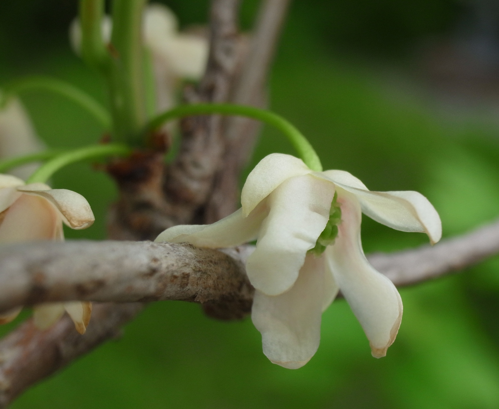 株についた花は,10個ほど? (雄花は時期を過ぎると花柄ごと枝からとれる。いまは時期が過ぎた頃なので,確かな数はわからず。)