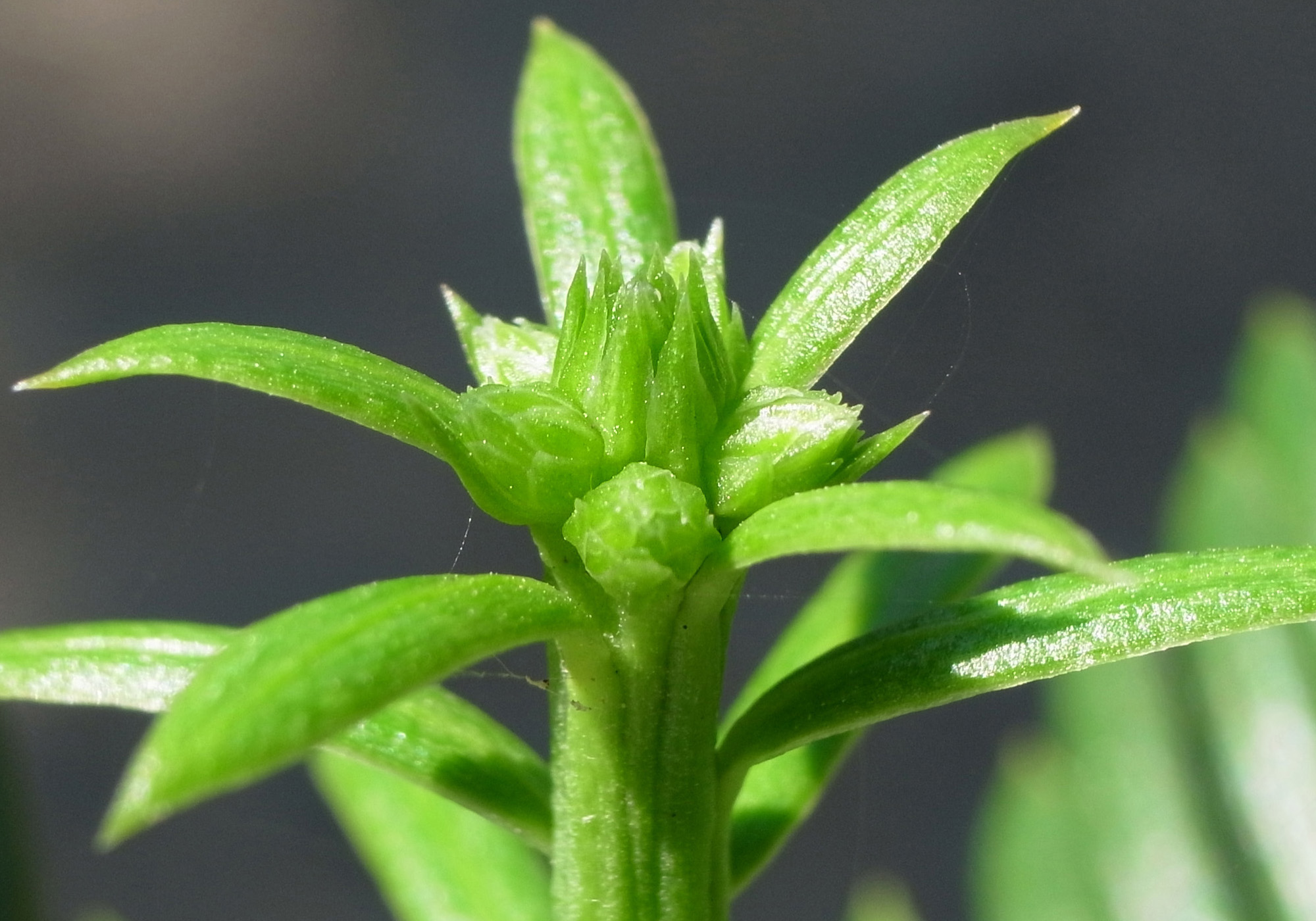 このような数の冬芽がついているのは見たことがなく,たいてい1, 2, 3個である。