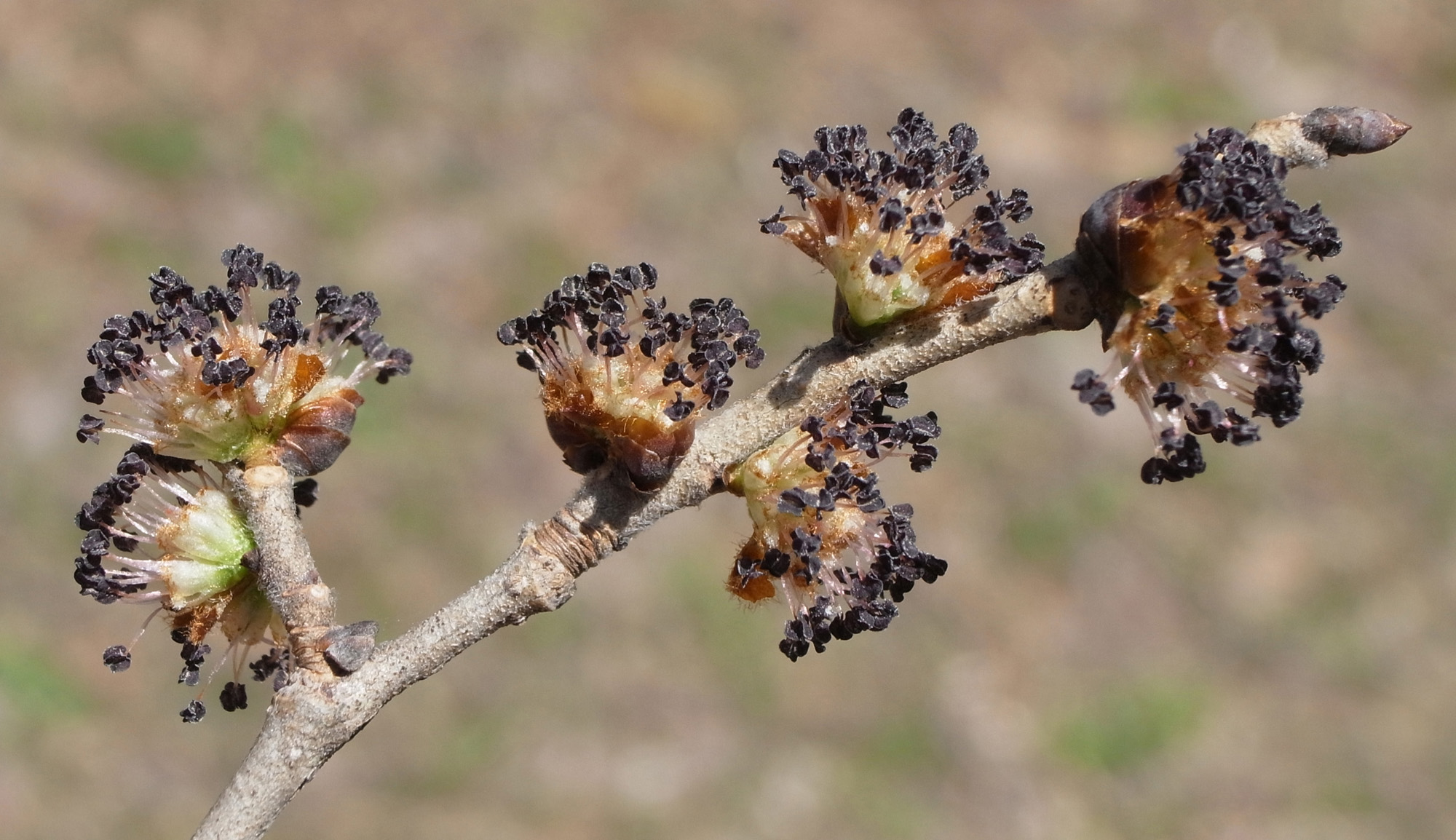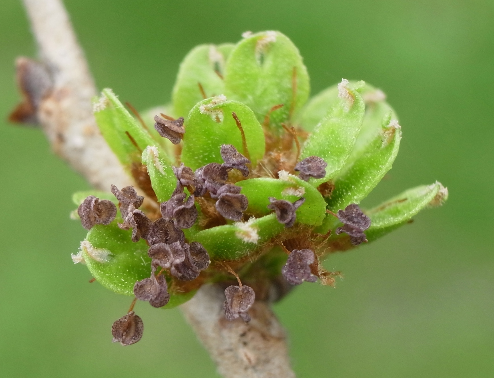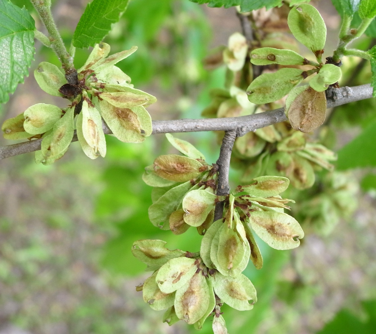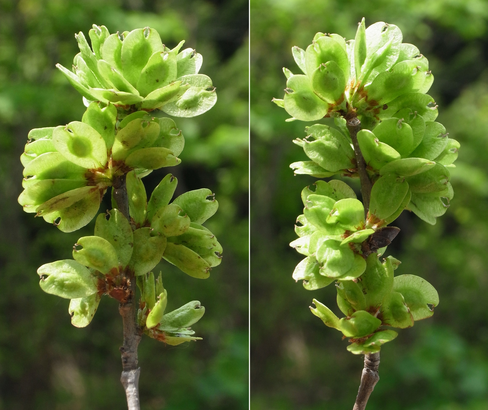Up ハルニレ : 花──冬芽・花・果実・種子 作成: 2009-06-30