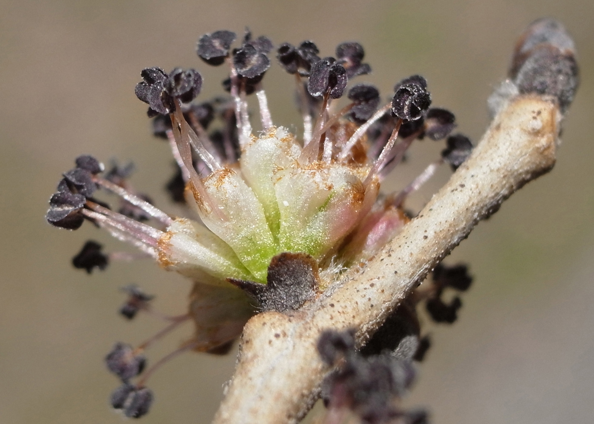 雄しべの葯が割れ,花粉放出が終わっている