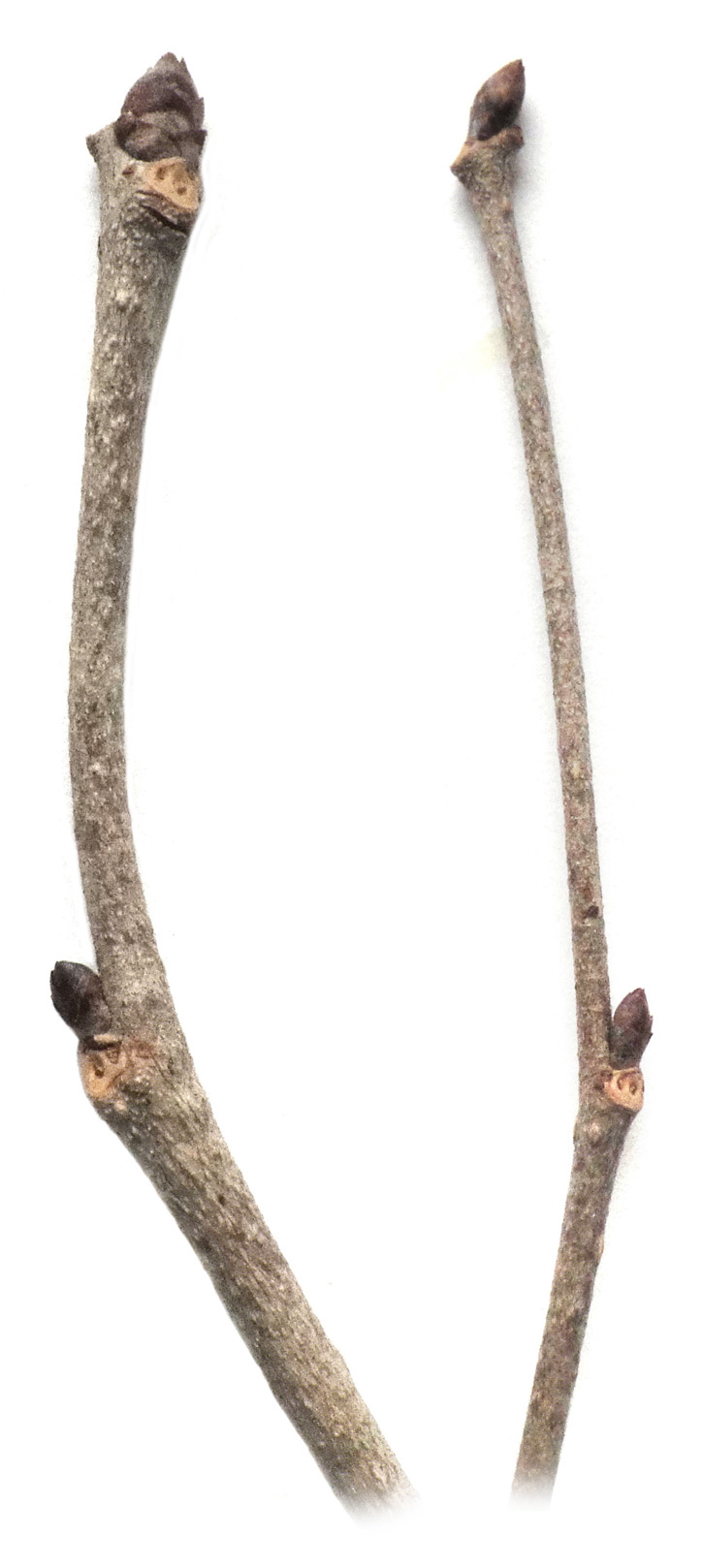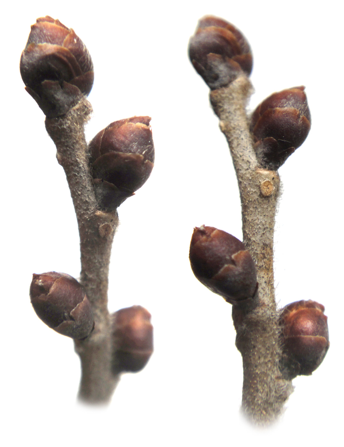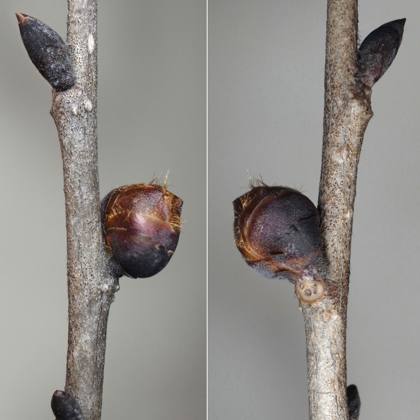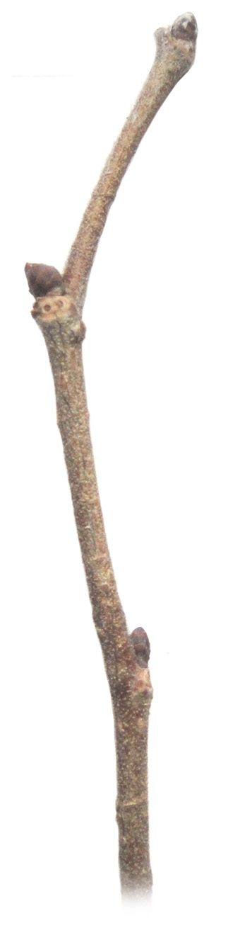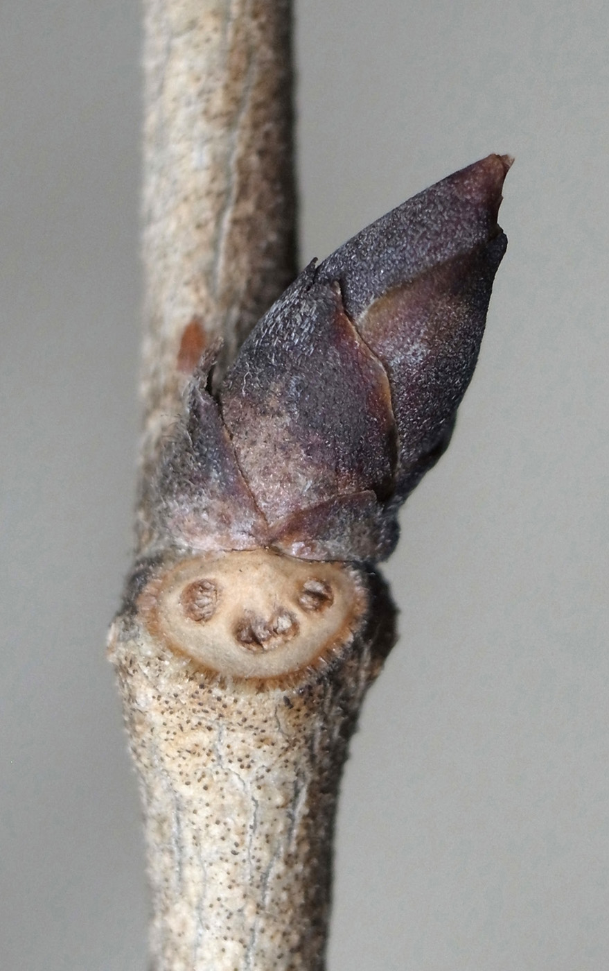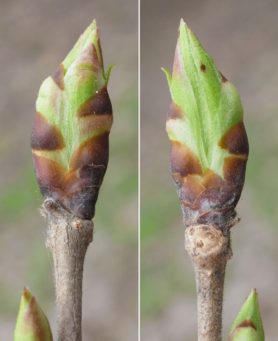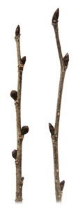 真ん中が花芽,これを挟んで葉芽
