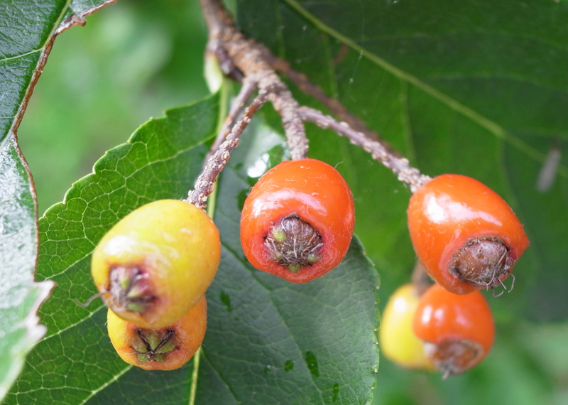 ワタゲカマツカは,葉がカマツカの葉より大きく,毛が密生。