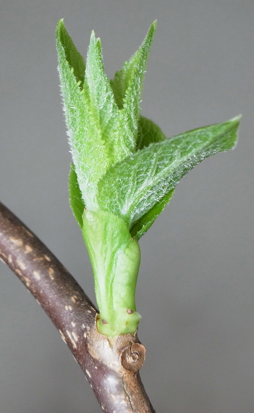 半陰芽 (冬芽の大部分が隠れ, 一部分のみ見える)