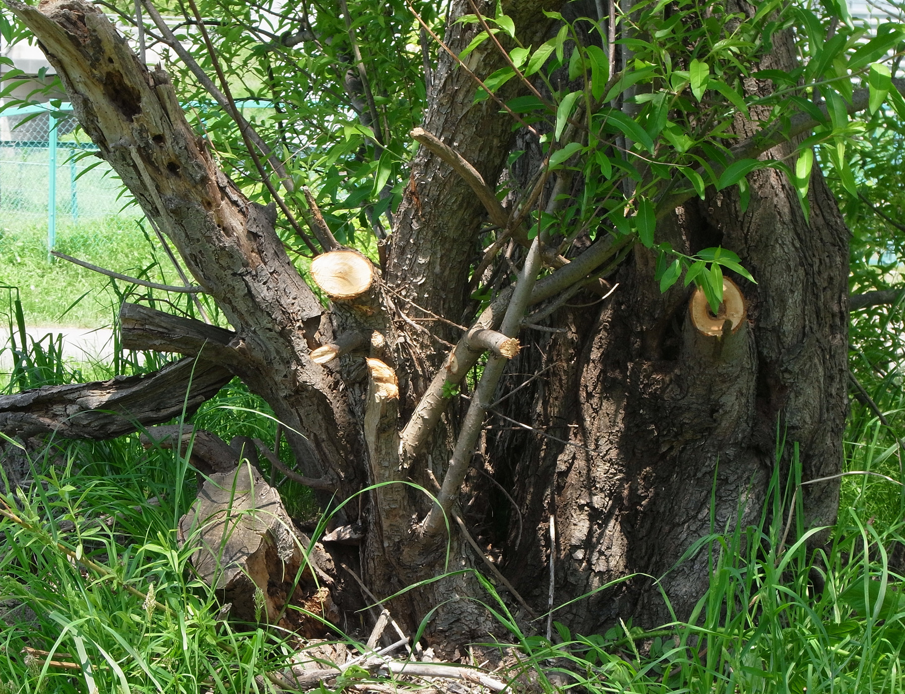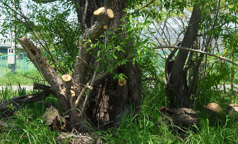 カットされて,少しの枝が残るのみ。