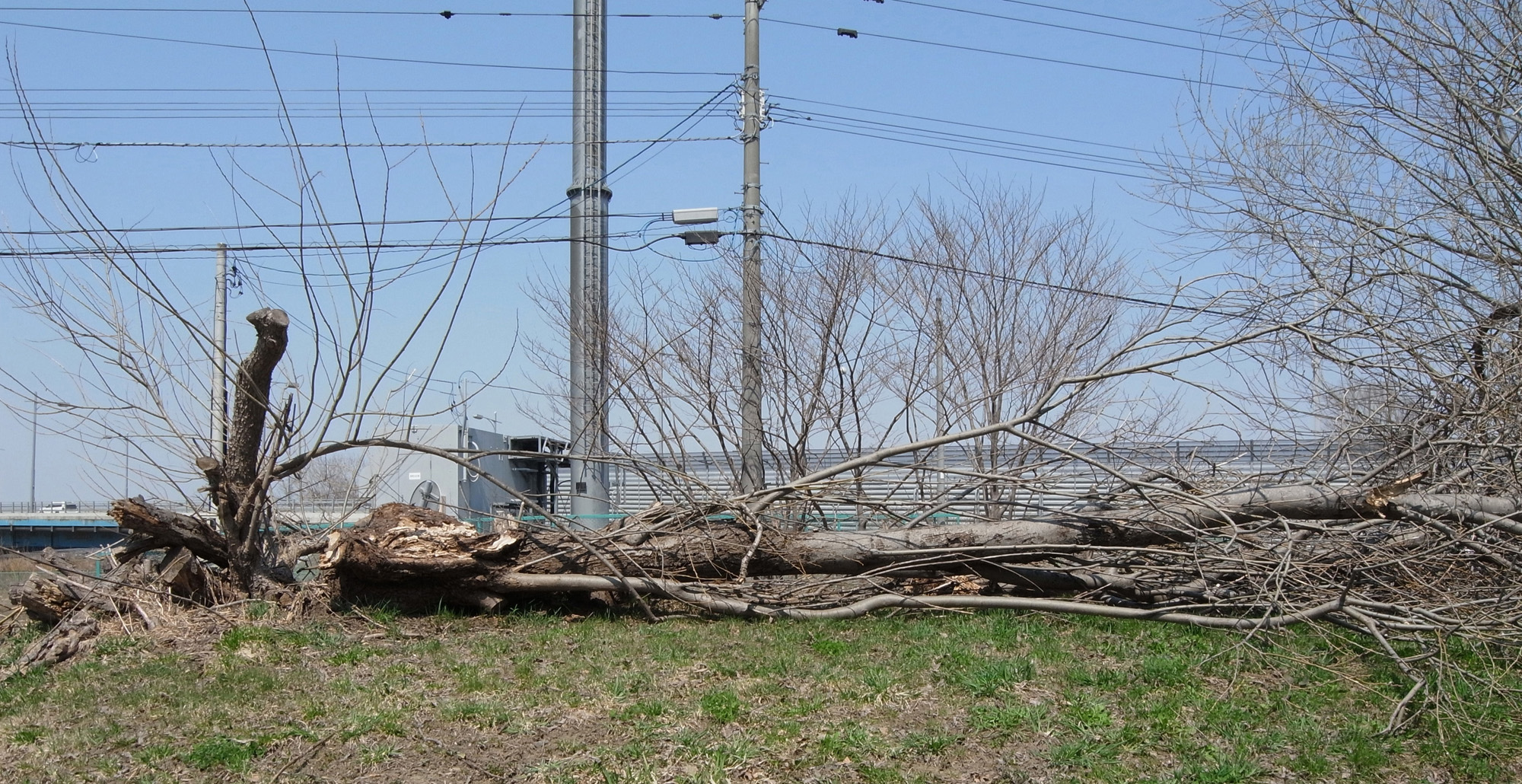 後方のエゾノカワヤナギが倒れていた。