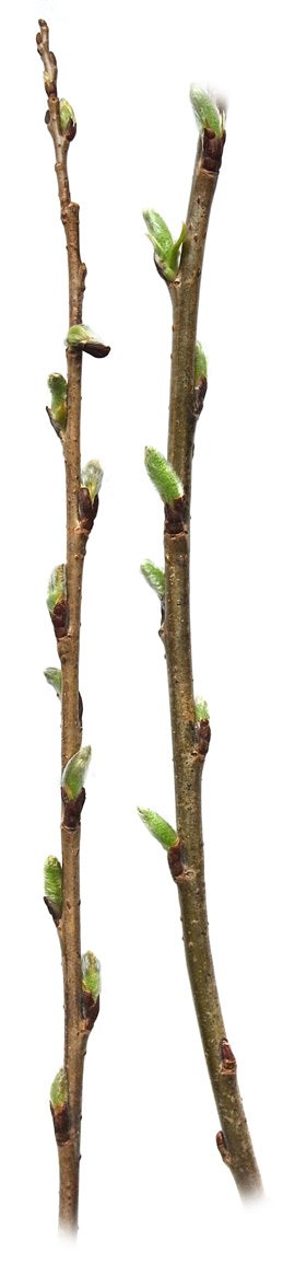 右にエゾノカワヤナギ
