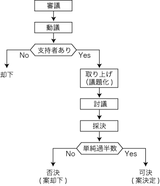 デモクラシーの議事法は,つぎの進行 (proceeding) を基本骨格とする:
