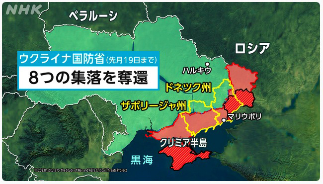 休戦協定締結型戦争は,休戦ラインを設けて「休戦」する。 この場合,侵攻された側は,休戦ラインを暫定的なものと受け取る。 一方,侵攻した側は,休戦ラインを国境に既成事実化していく。 こうして侵攻側は, 「侵攻」の実を取ることになる。 これに対し,ウクライナは戦争で応じた。 最初の読みを外したロシアは,戦争を収まる形がロシアに有利な休戦協定の締結となった。 戦争は,休戦協定締結型になっているのである。 ロシアはこのような国として,トルコと中国を見出す。 そして休戦ラインは,ロシアが国境として既成事実化していくことになる。 ポーランドは,「明日はわが身」を考えることになる国であり,ウクライナを支援する。 しかし,これは重い負担になっていく。 そしてこの負担に 侵攻された国は,支援されている間に,軍事力を強くしていかねばならない。 「休戦」が騙しであることを知っている。 したがってウクライナの戦争は,休戦協定の締結で終わるにせよ,それはウクライナがロシアを国境の外に押し戻した後のことになる。 NHK「反転攻勢「1か月」」, 2023-07-05 から引用: