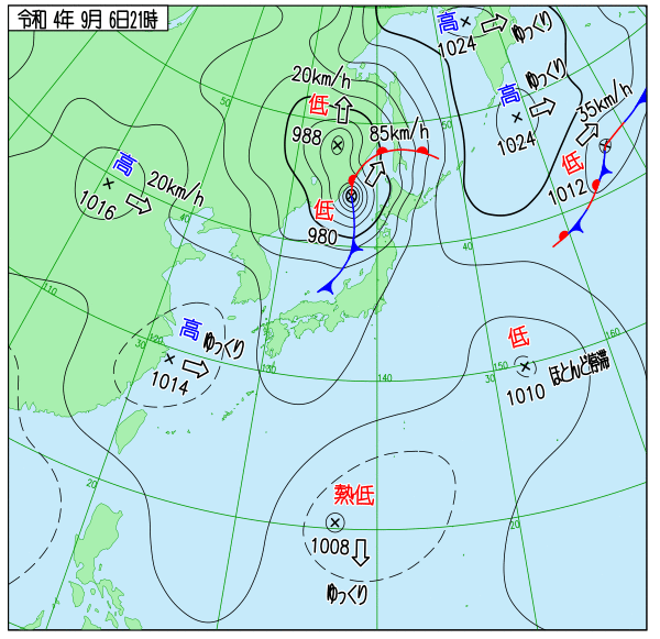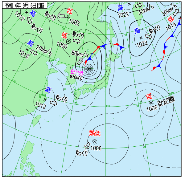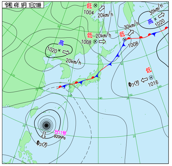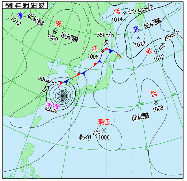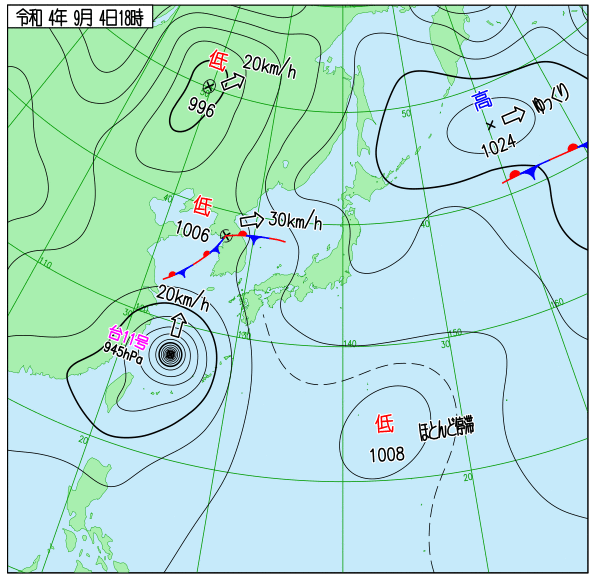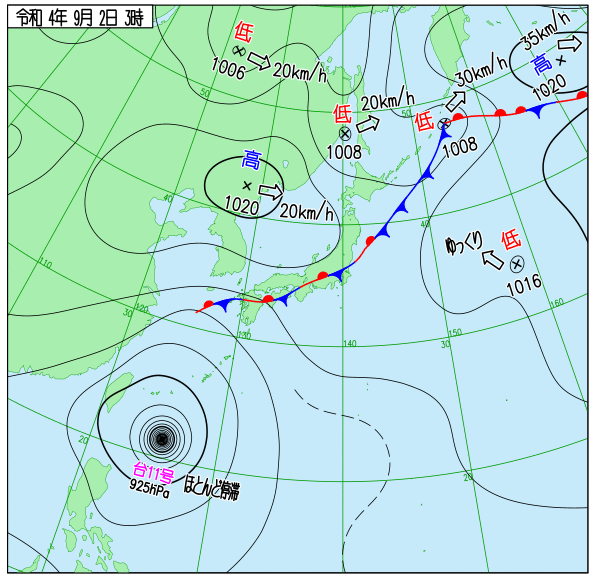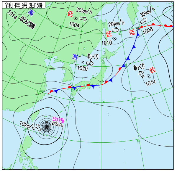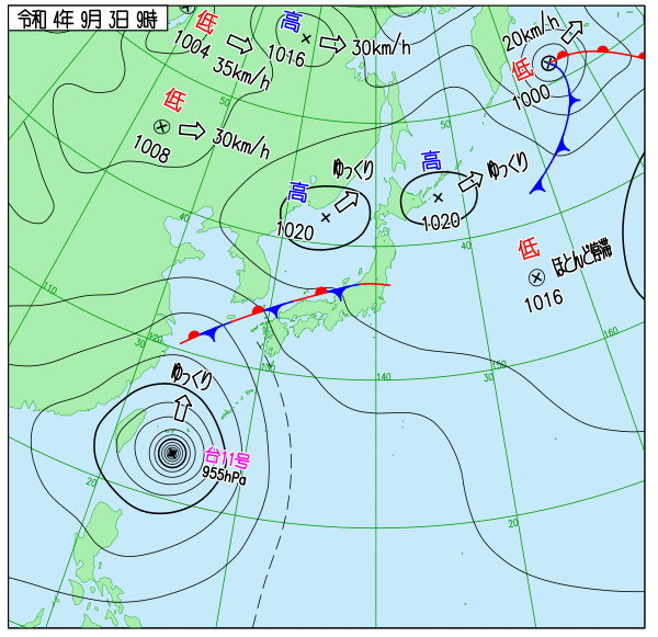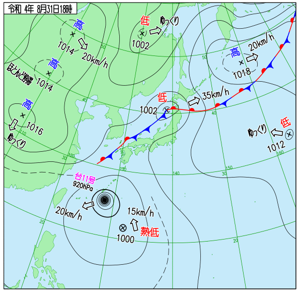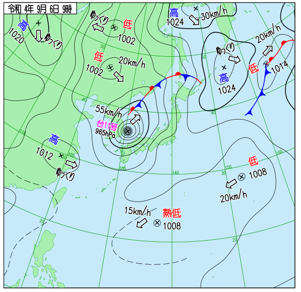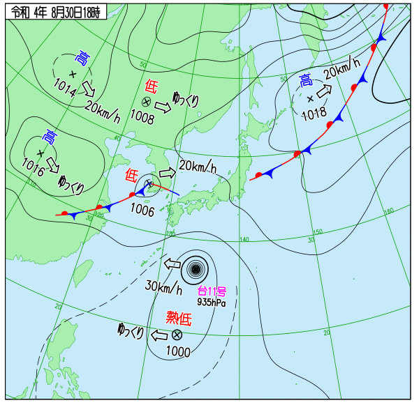 Up 2022年台風11号 地上天気図 作成: 2022-08-30