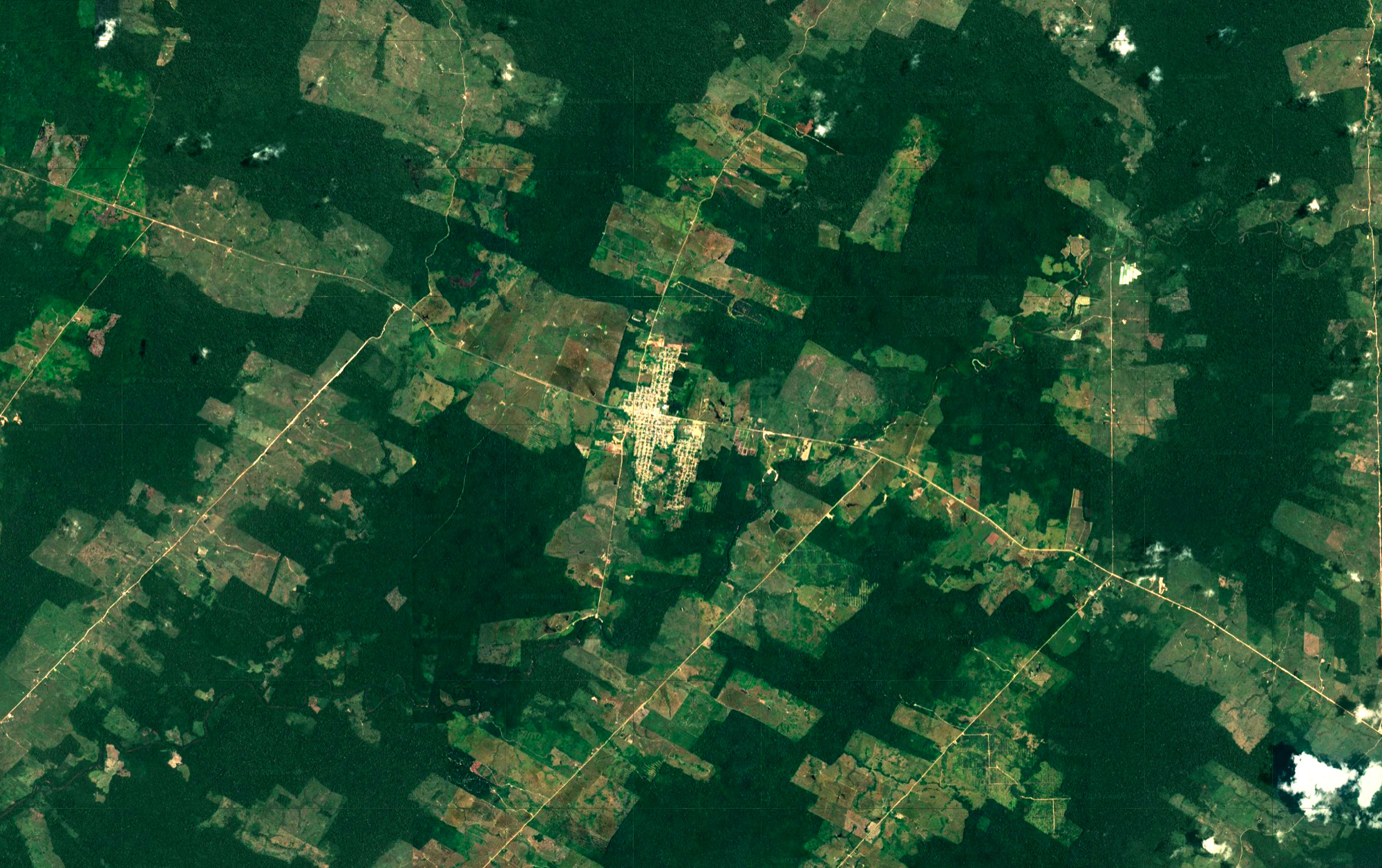 ブランコ川の上流や東側にある細い線の集まりは,耕作地: