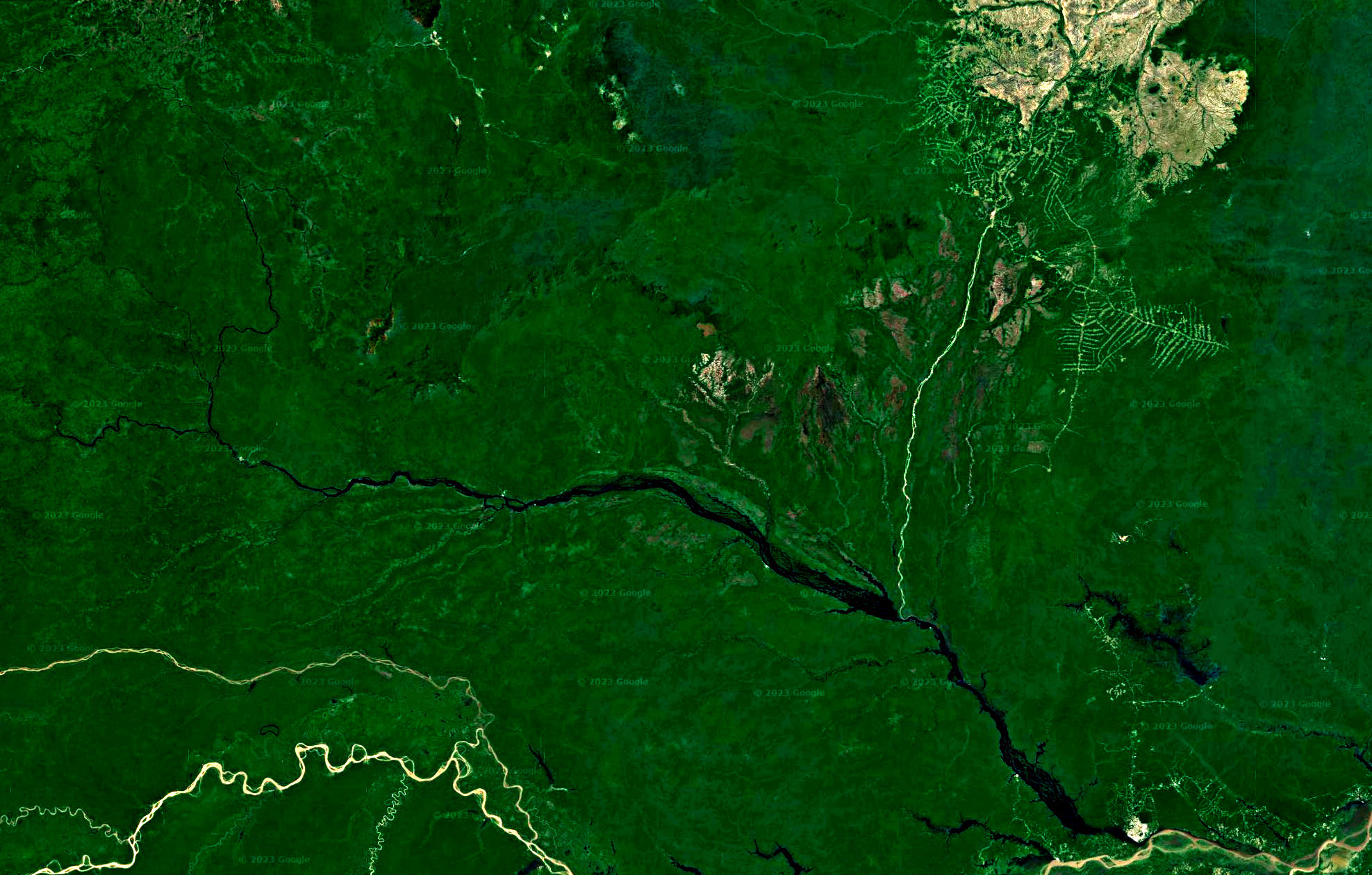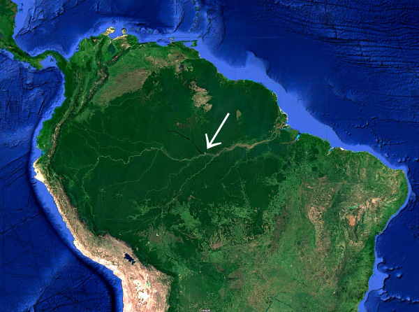 横方向に流れている茶色い川が,アマゾン川。