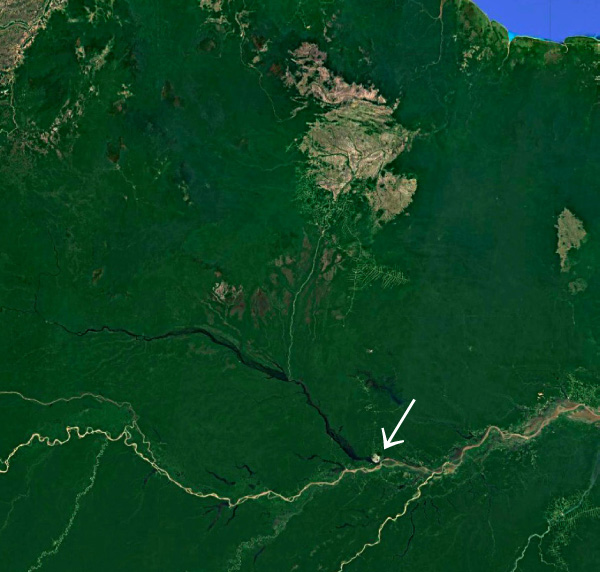 そしてこのときは,北の<地図で茶色の地域>から ネグロ川へと流れてくる ブランコ Branco 川 (「白い川」) も,考えに入れる必要がある。