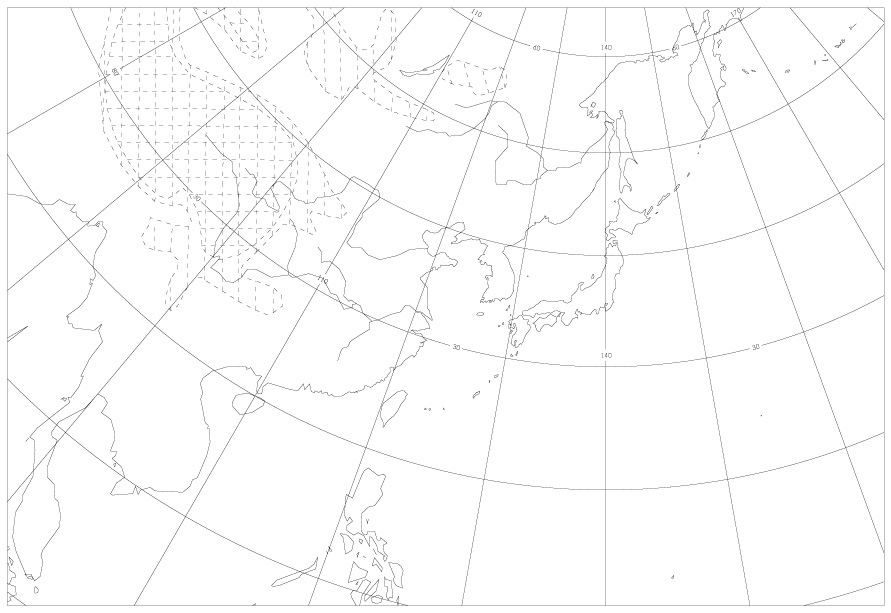 等温線:0℃ を基準にして,3℃ 毎 (寒候期12〜3月は 6℃毎) に破線で表示