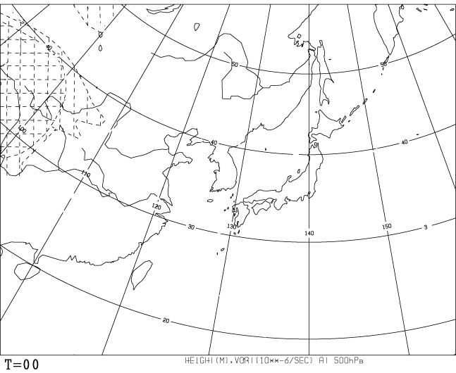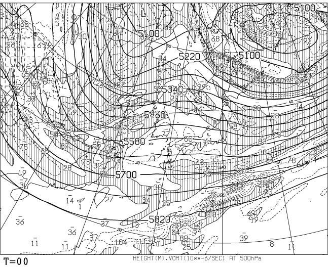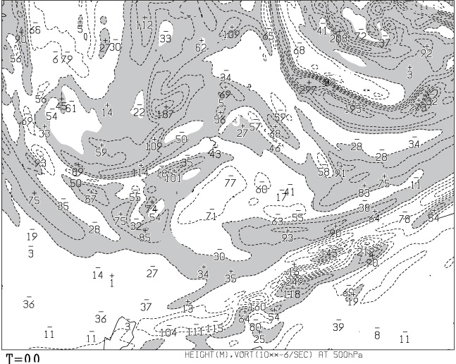 • その他は,渦度40 (×10-6sec-1) 毎に、最大±200まで、破線で表示。