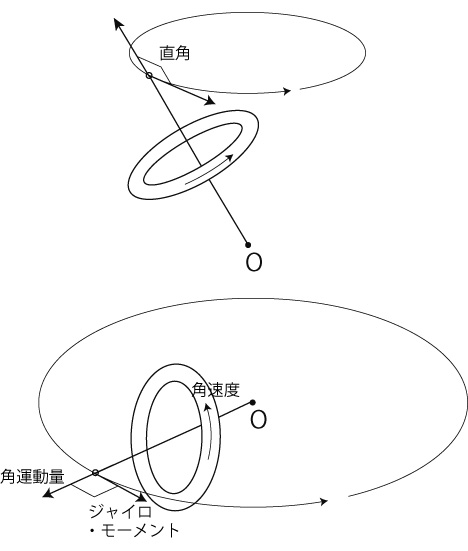 角運動量と直角に,ジャイロモーメントが働く。